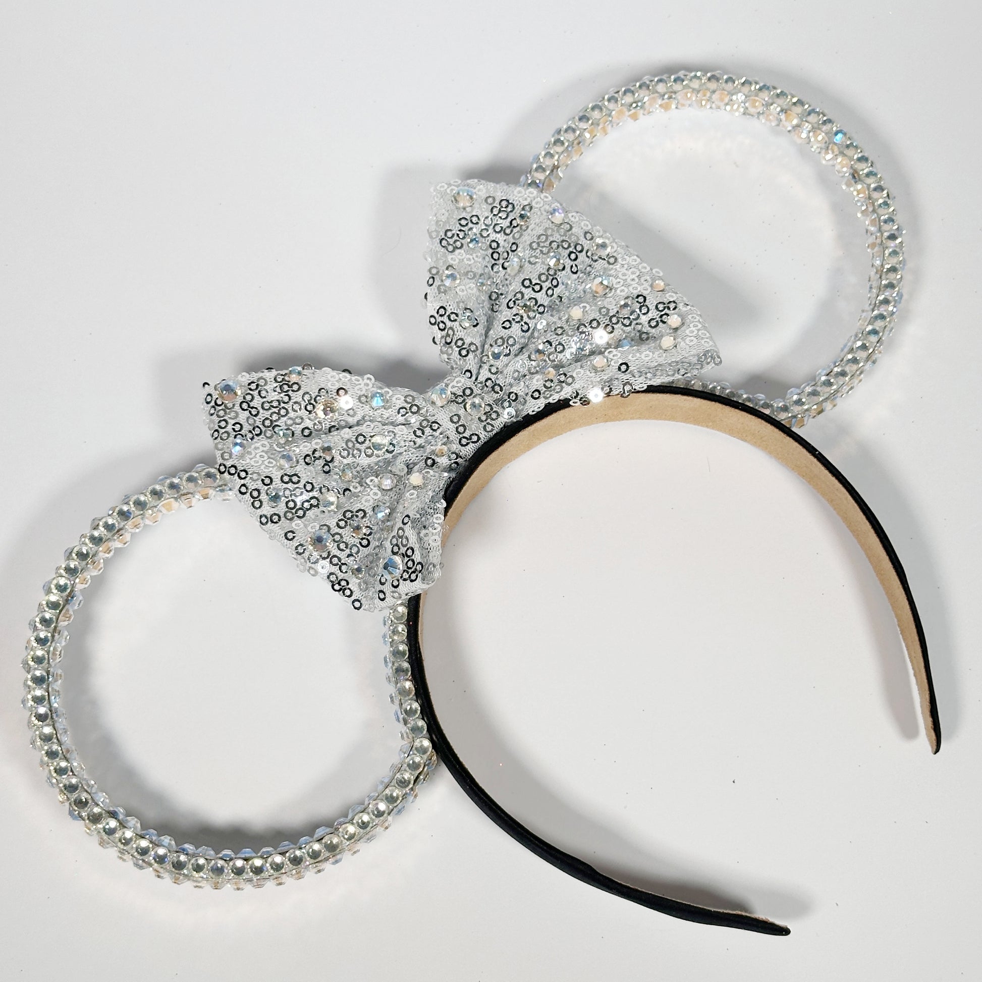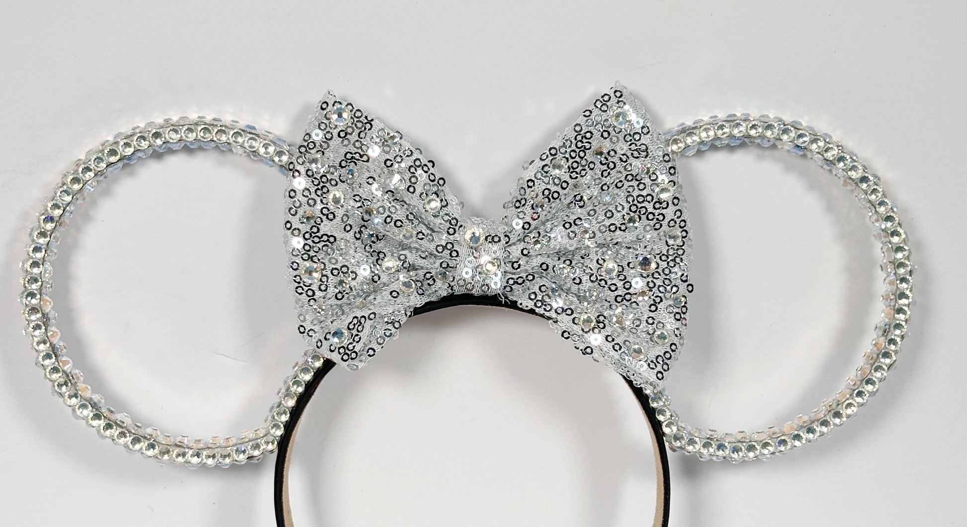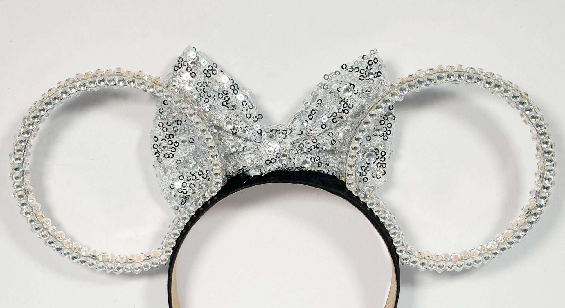 Introducing our Classic Ears in Fallen Snow Sparkle from Sparkle Envy Ears! Each set of ears are handmade with a touch of love and magic. This sparkly, stunning accessory is perfect for enhancing your park adventures.