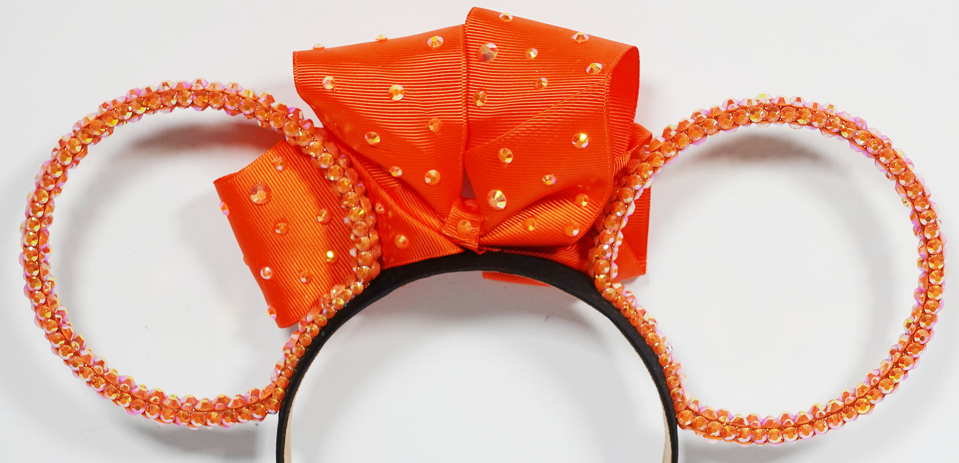 Introducing our Classic Ears in Orange Magic Sparkle from Sparkle Envy Ears! Each set of ears are handmade with a touch of love and magic. This sparkly, stunning accessory is perfect for enhancing your park adventures.