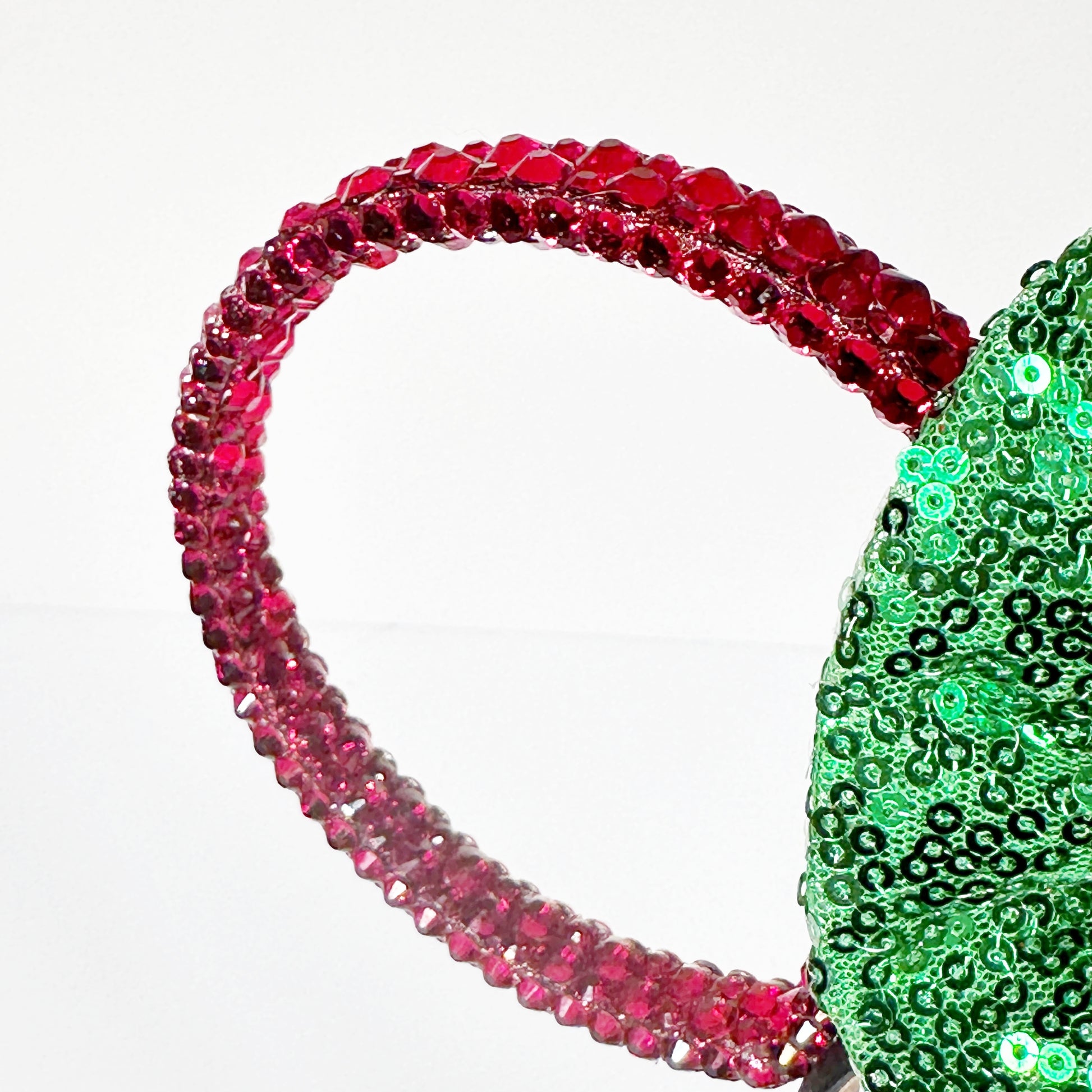 Introducing our Classic Ears in Christmas Red Sparkle from Sparkle Envy Ears! Each set of ears are handmade with a touch of love and magic. This sparkly, stunning accessory is perfect for enhancing your park adventures.