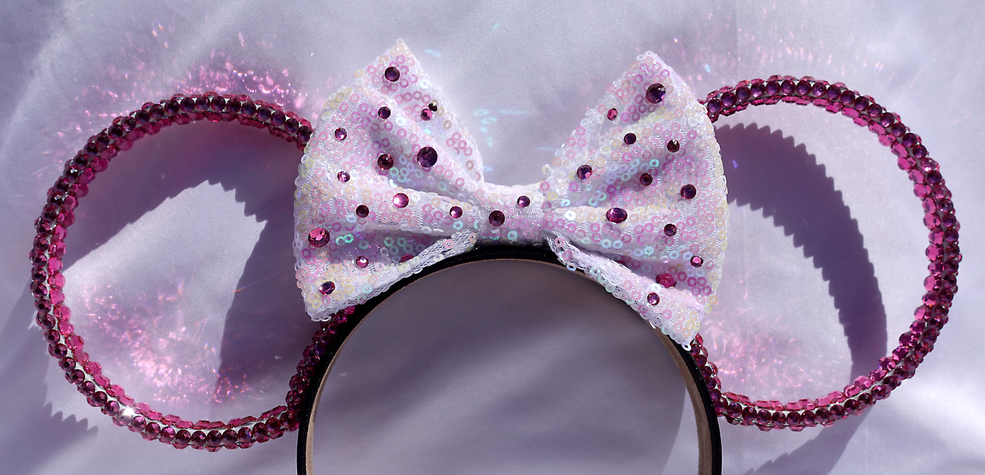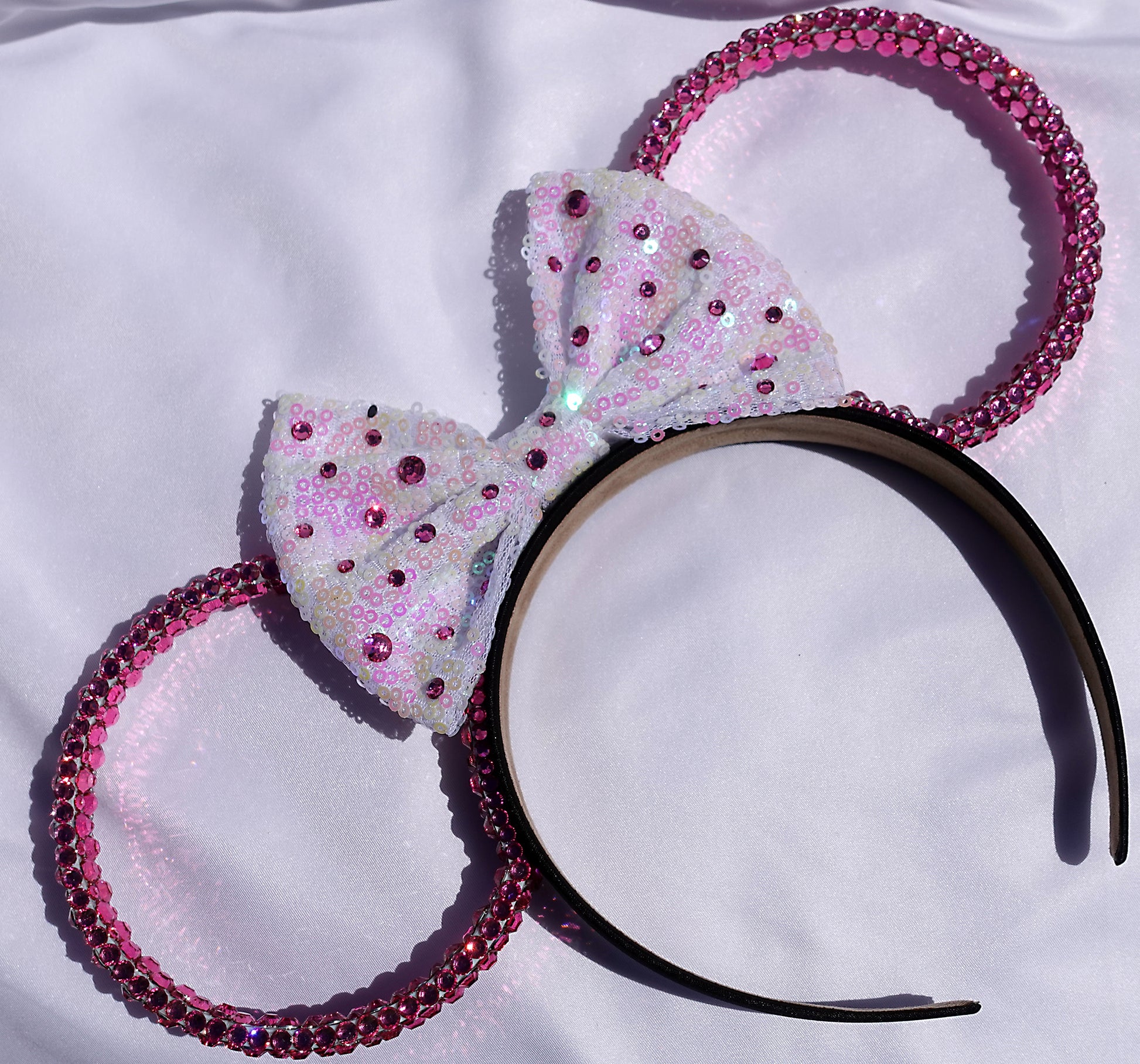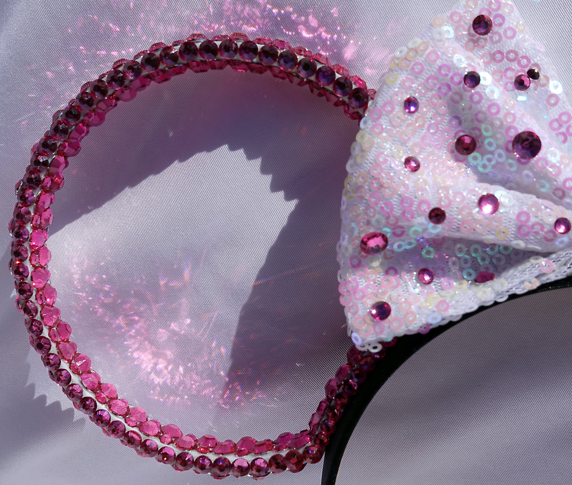 Introducing our Classic Ears in Pink Envy from Sparkle Envy Ears! Each set of ears are handmade with a touch of love and magic. This sparkly, stunning accessory is perfect for enhancing your park adventures.