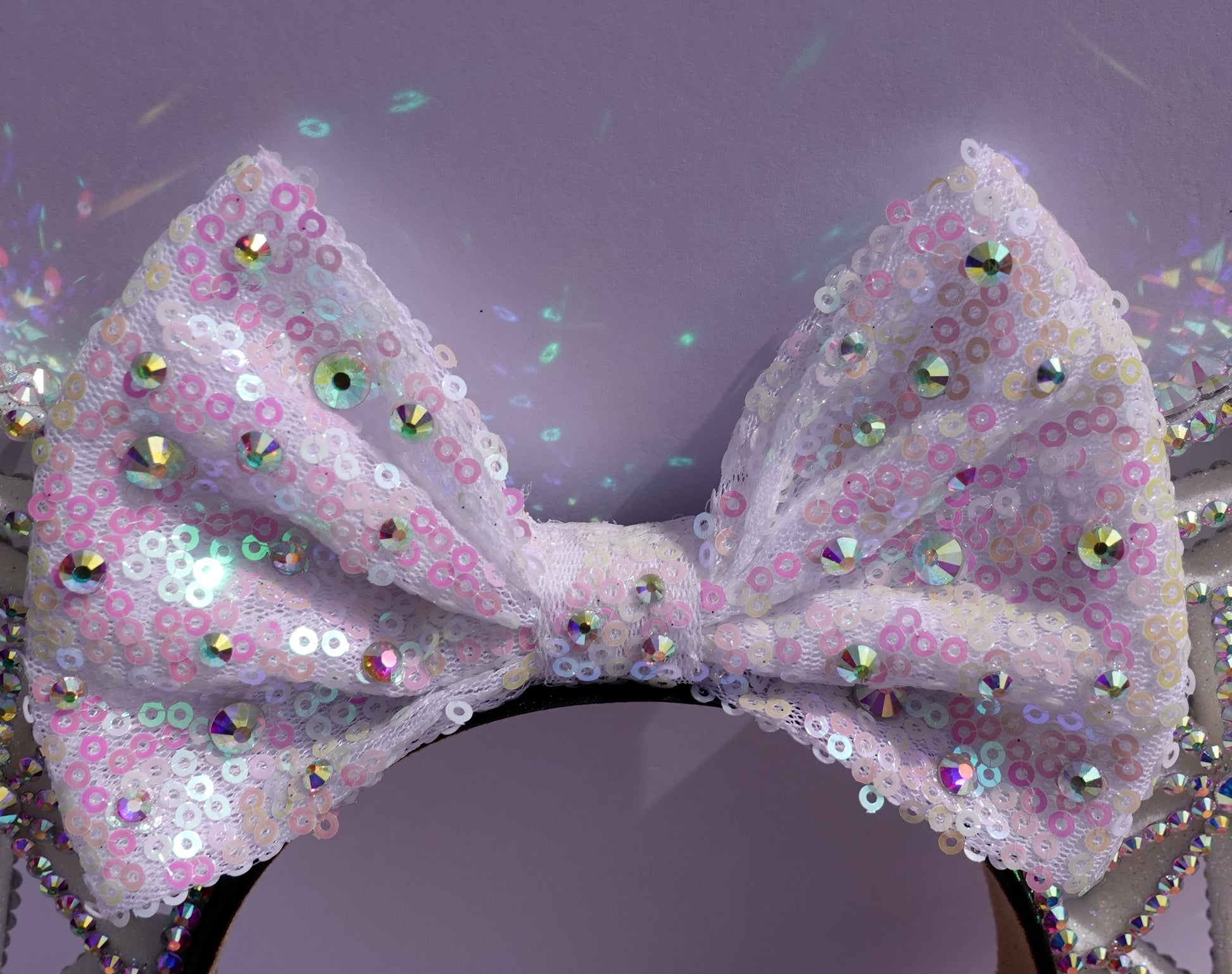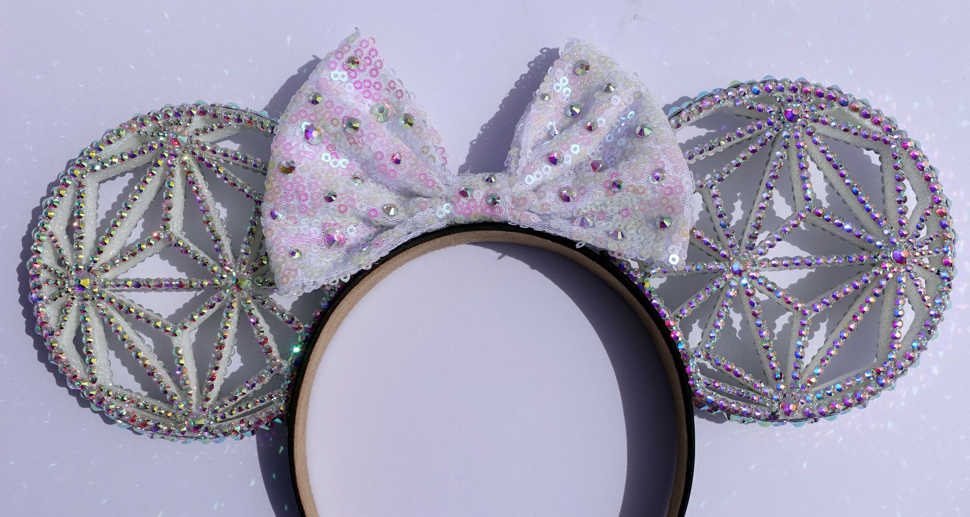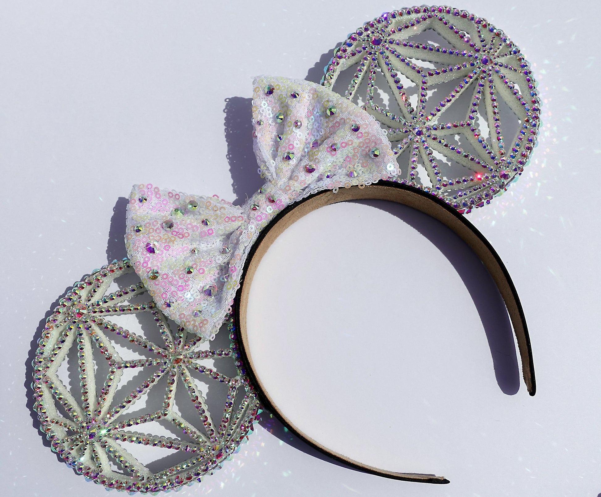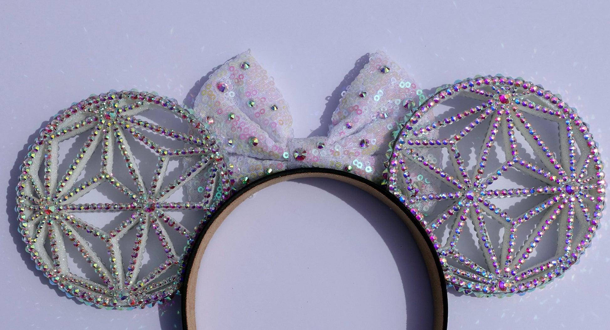 Introducing our Park Collection Ears in Globe Iridescent from Sparkle Envy Ears! Each set of ears are handmade with a touch of love and magic. This sparkly, stunning accessory is perfect for enhancing your park adventures.