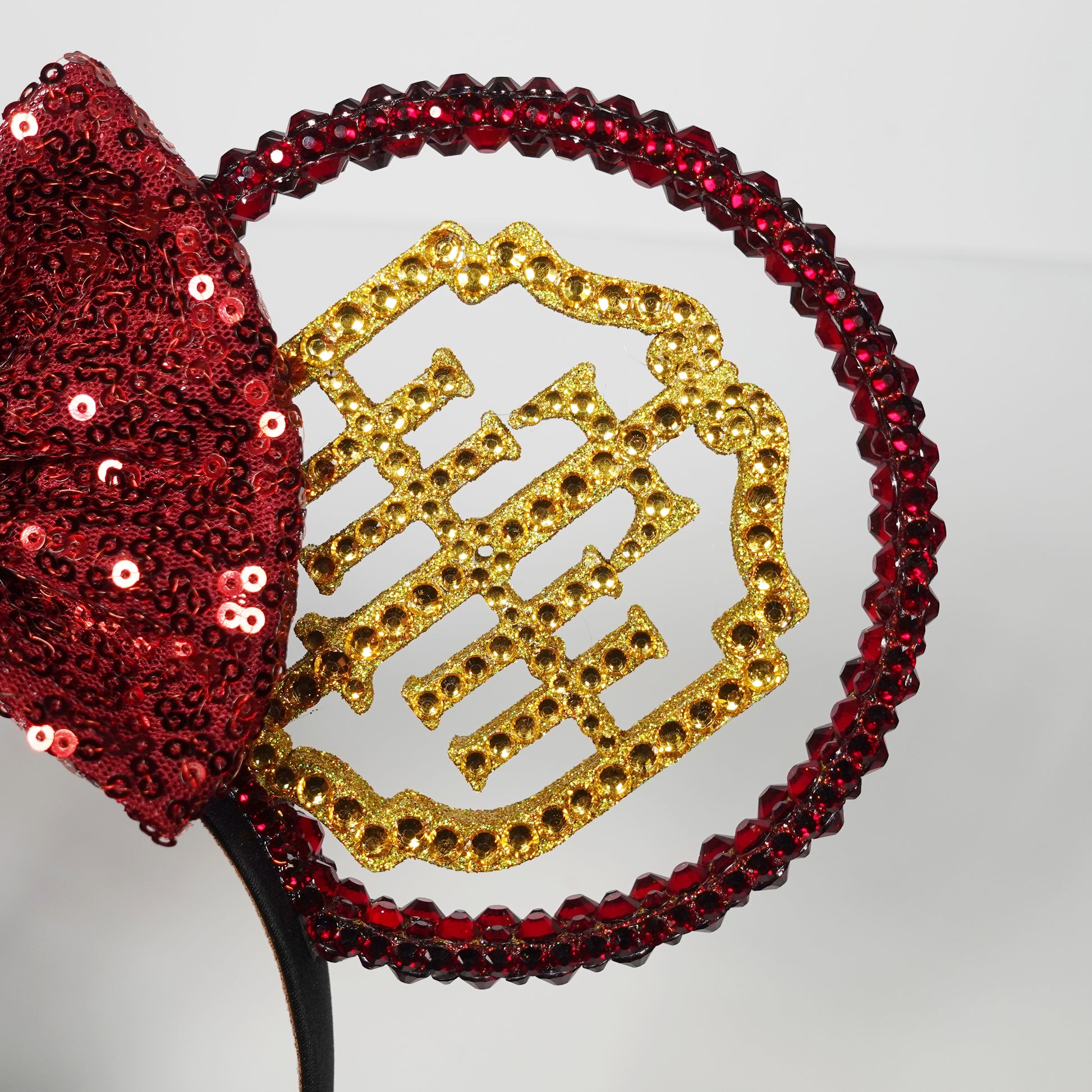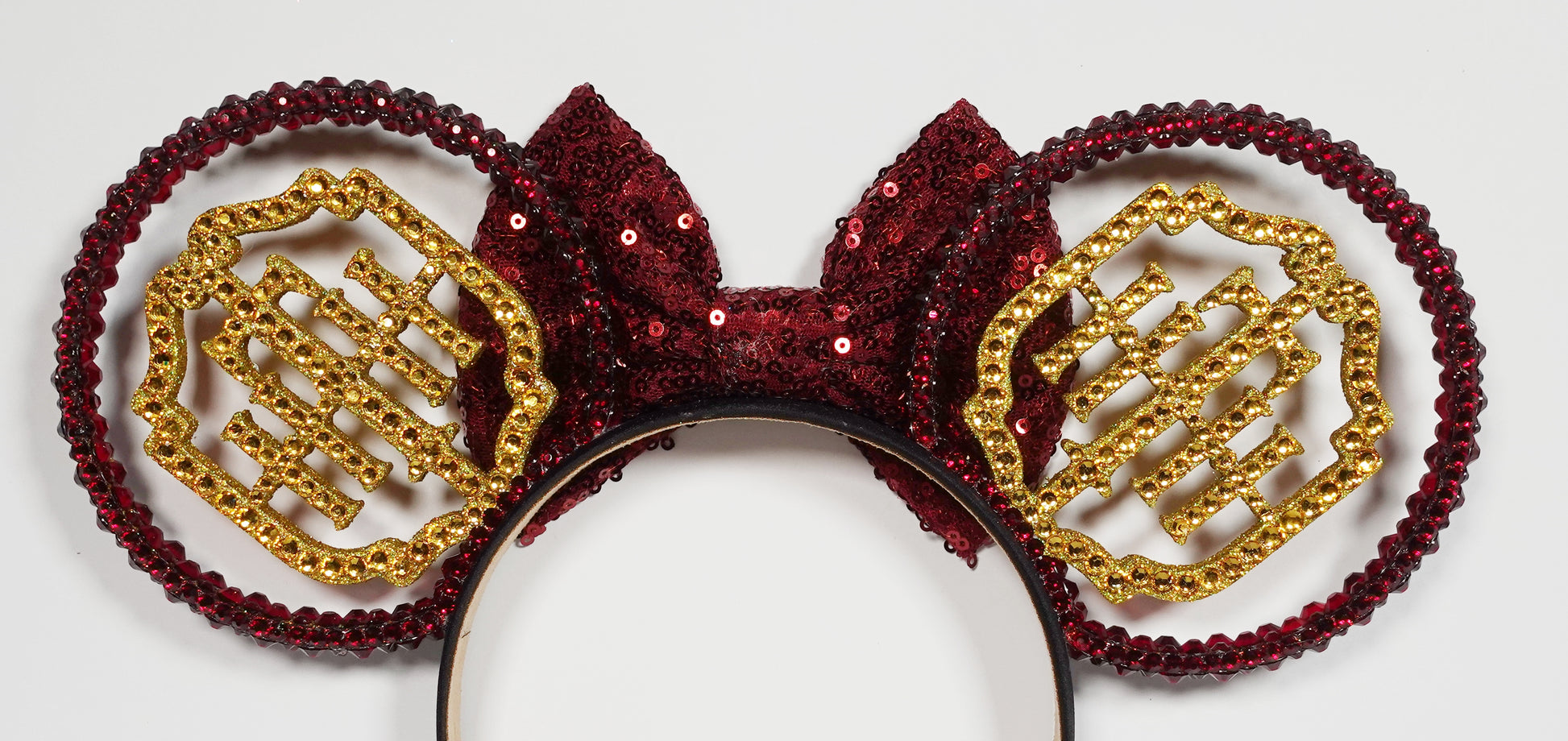 Introducing our Park Collection Ears in Parks Haunted Tower Gold Red Ears from Sparkle Envy Ears! Each set of ears are handmade with a touch of love and magic. This sparkly, stunning accessory is perfect for enhancing your park adventures.