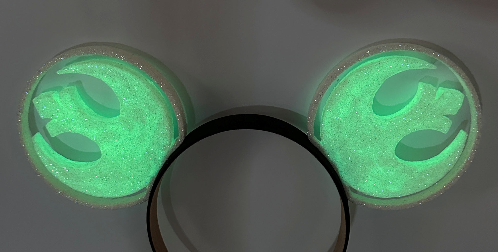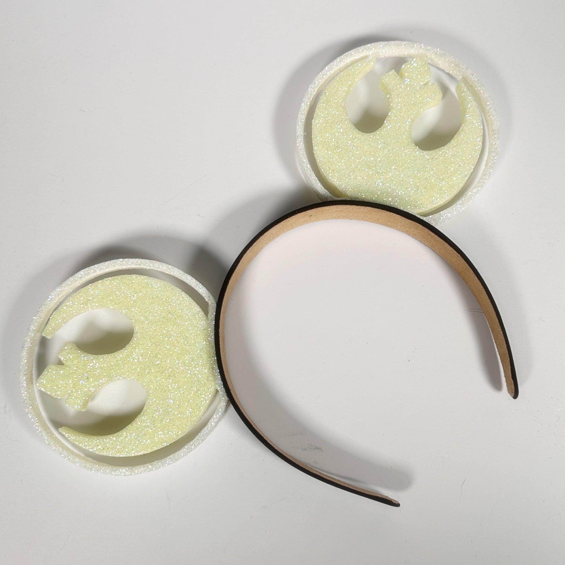 Introducing our Character Ears in Rebel Alliance Glitter Glow from Sparkle Envy Ears! Each set of ears are handmade with a touch of love and magic. This sparkly, stunning accessory is perfect for enhancing your park adventures.